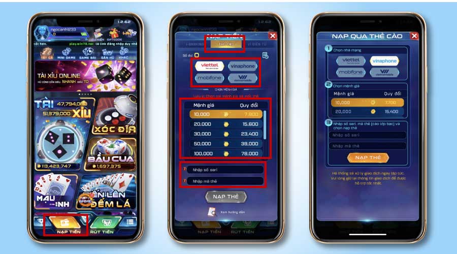 Hướng dẫn nạp thẻ cào vào tài khoản game Win79