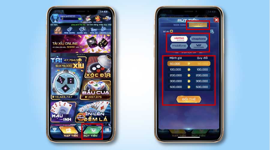 Hướng dẫn rút tiền game Win79 qua thẻ cào